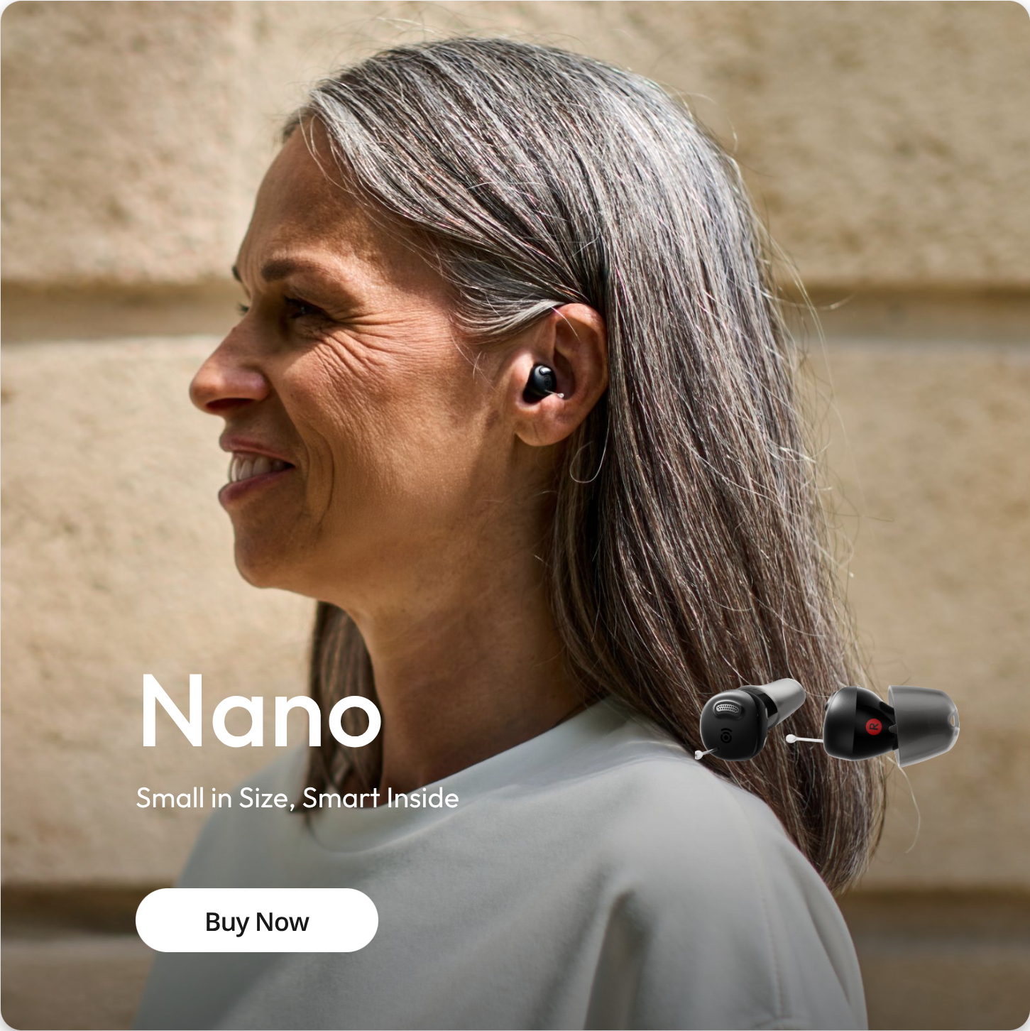 "I switched to the Nano model and it feels totally different. Small and discreet, good for daily wear. The button on the case is handy — just press to change volume or mode, no need to mess with a phone. The feedback control is great too, even on higher levels the sound stays clear without whistling. Plus the case has UV cleaning, which makes it easy and hygienic."