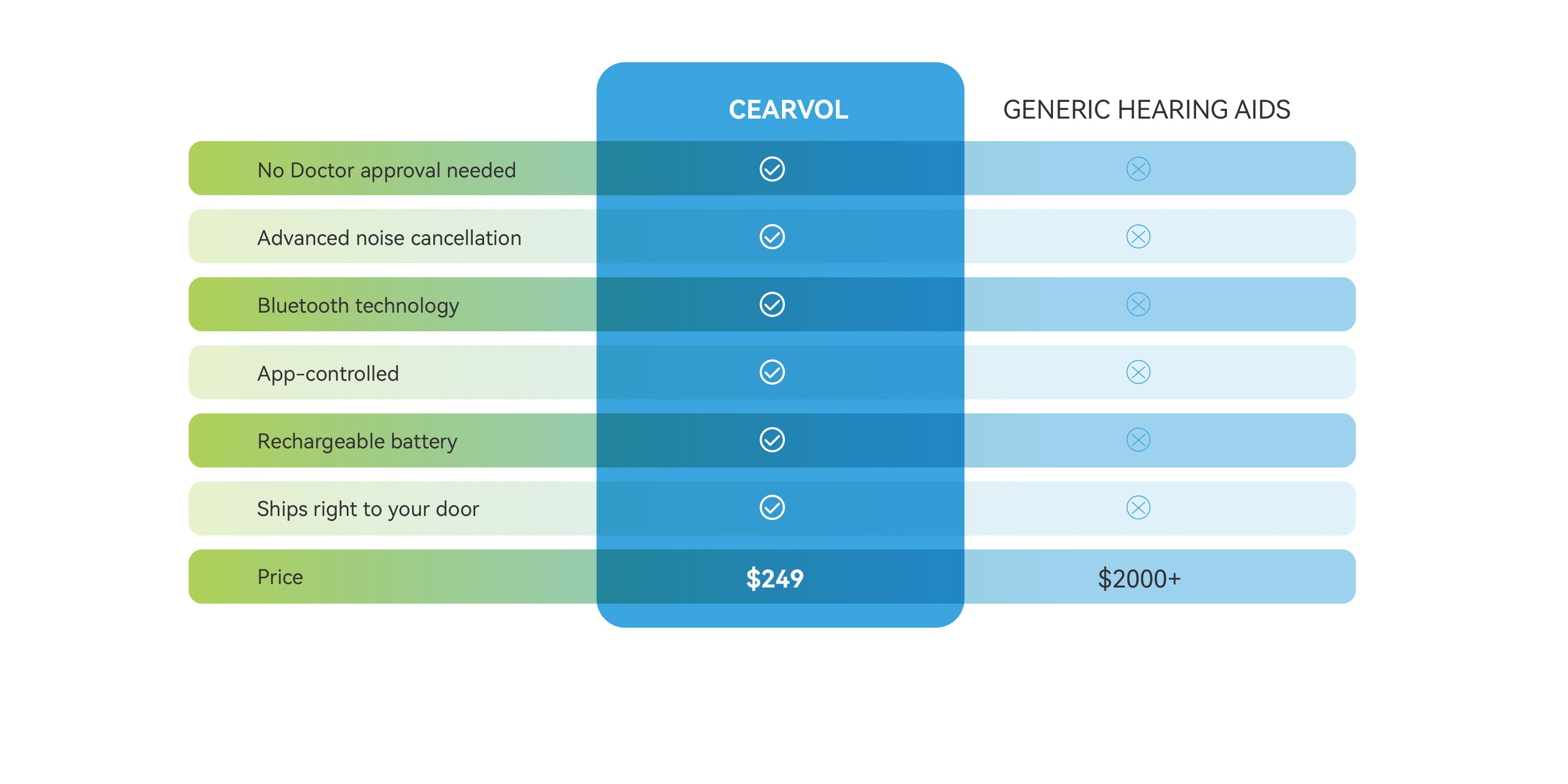 With Cearvol, you can start enjoying clear conversations immediately. Our FDA-registered hearing aids are designed to work for individuals with mild to moderate hearing loss right out of the box.