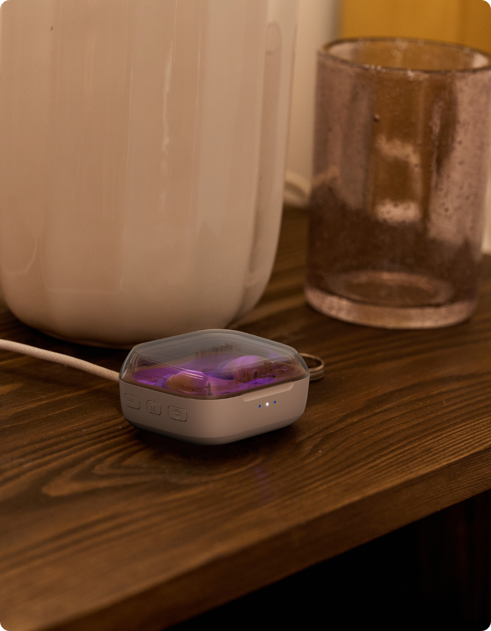 All adjustments are made directly on the charging case for a simple, comfortable experience.