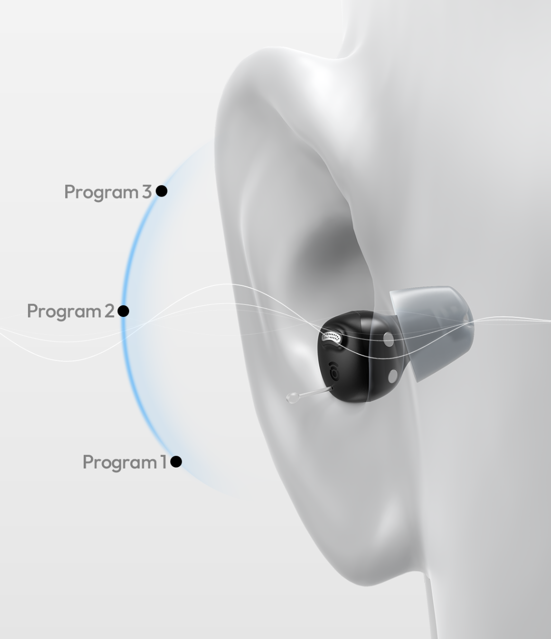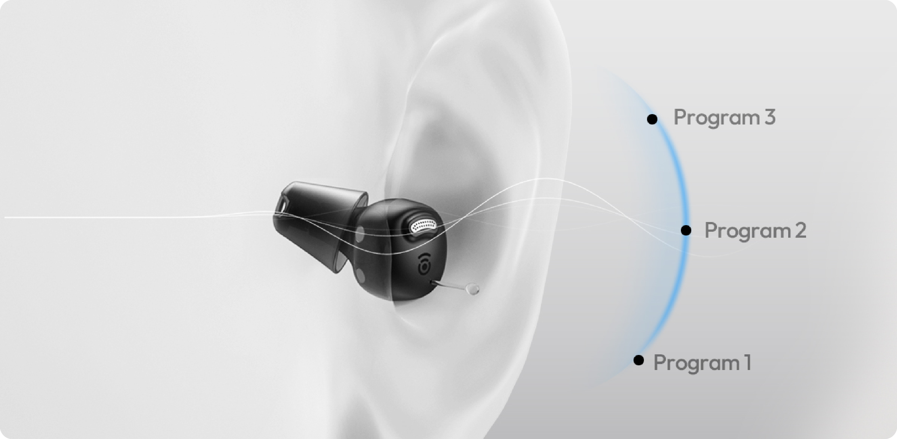 Outdoor Mode reduces wind and traffic noise for clear, ocused hearing in open-air environments.