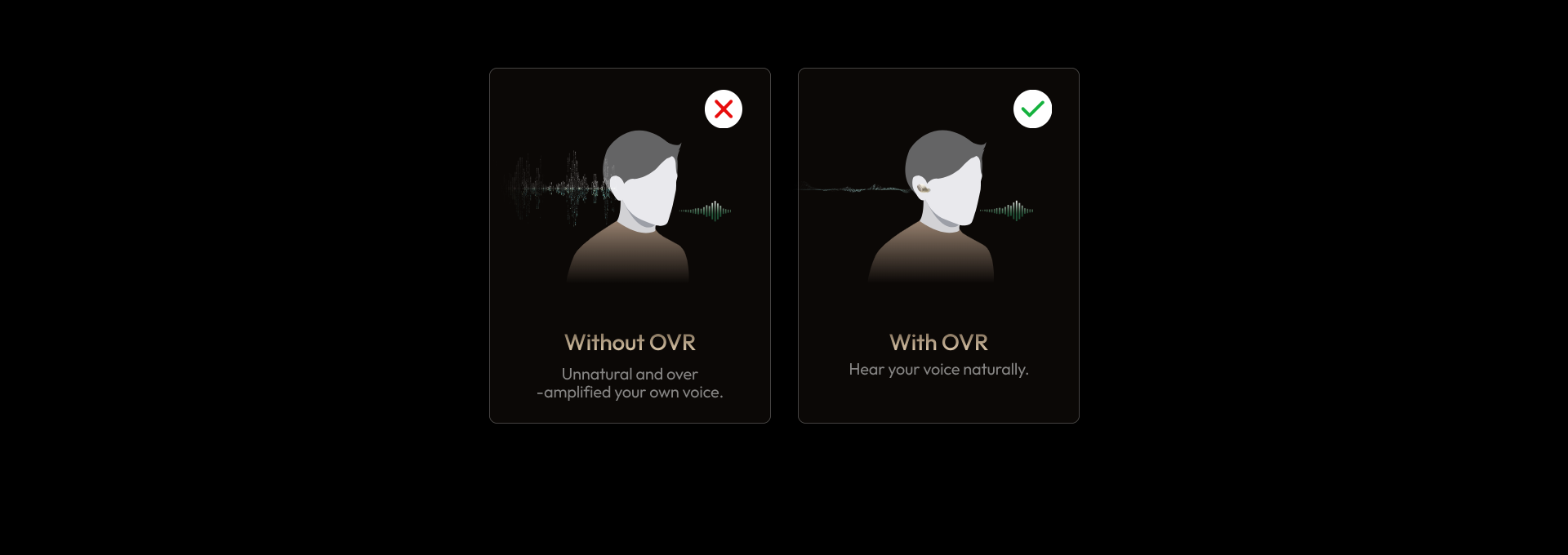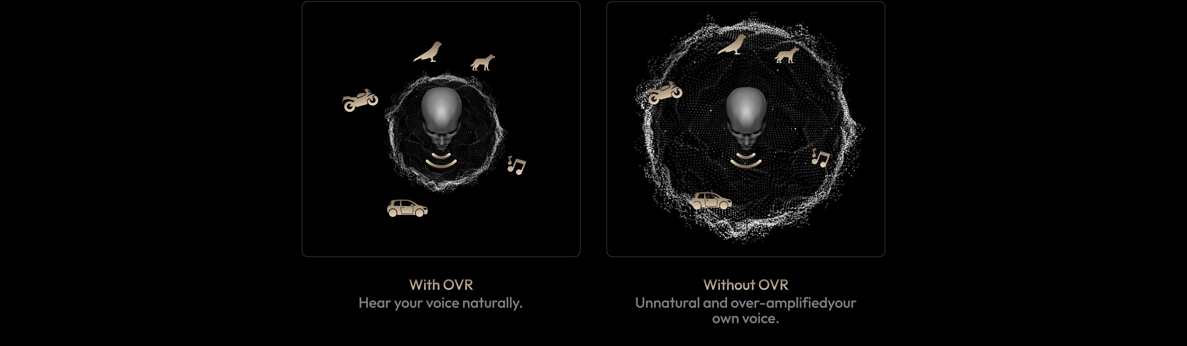 AI analyzes your personal acoustic profile and fine-tunes how you hear your own voice, restoring natural balance for comfortable conversations.