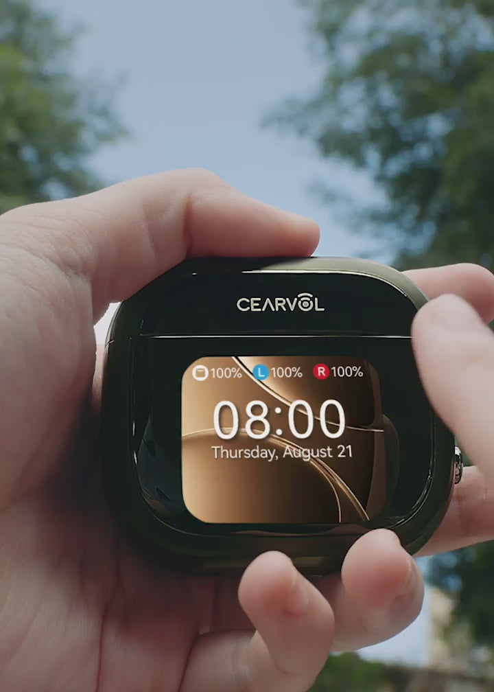AI-powered touchscreen for effortless control. Break free from tiny earbud buttons and phone app.