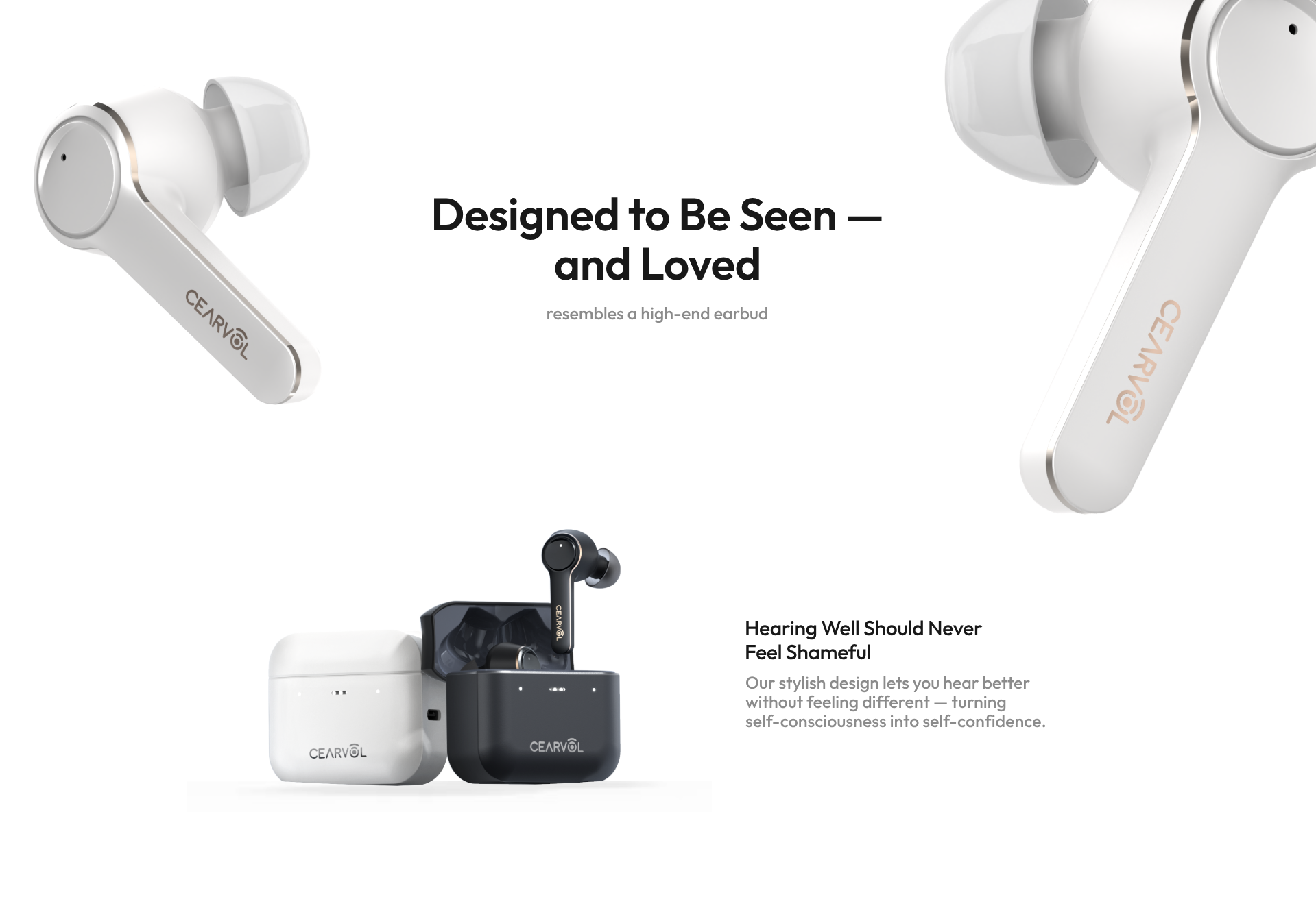 Cearvol's hearing aids are designed for ease of use, featuring rechargeable batteries and a natural sound quality due to their completely-in-the-canal placement. Unlike many online options, Cearvol emphasizes user experience and offers robust customer support. As FDA-regulated medical devices, our hearing aids comply with standards for performance, manufacturing, labeling, and safety. In contrast, many online alternatives are Personal Sound Amplification Products (PSAPs) or general amplifiers that merely increase volume without enhancing clarity and are not subject to the same stringent standards. Cearvol's digital, Bluetooth-enabled OTC hearing aids combine sleek design with high-quality components to deliver clear sound.
